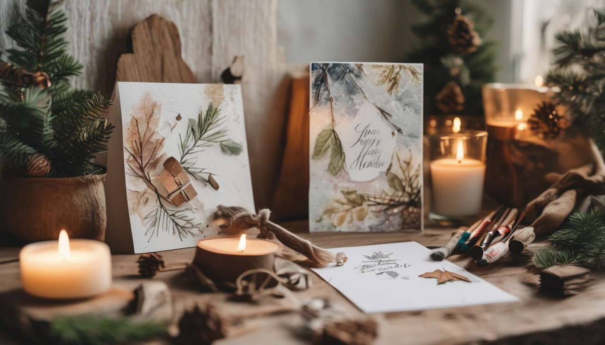 Hjemmelagde julekort laget av resirkulert papir og pyntet med naturlige elementer gir et personlig preg som verdsettes av mottakerne. Eksempler på slike elementer inkluderer: